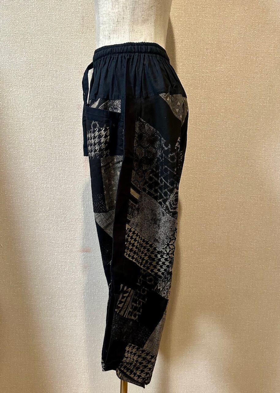 身長にもよりますが、足首が出る丈感で、ウエスト部分はゴム。 左右前面に大きめのポケットが付いてます♪