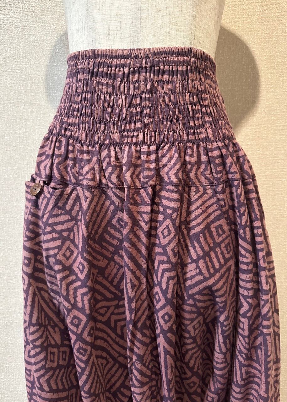 ウエスト部分、裾部分は、ゴムでのお作りになりますので、計測サイズは参考程度にご参照ください。