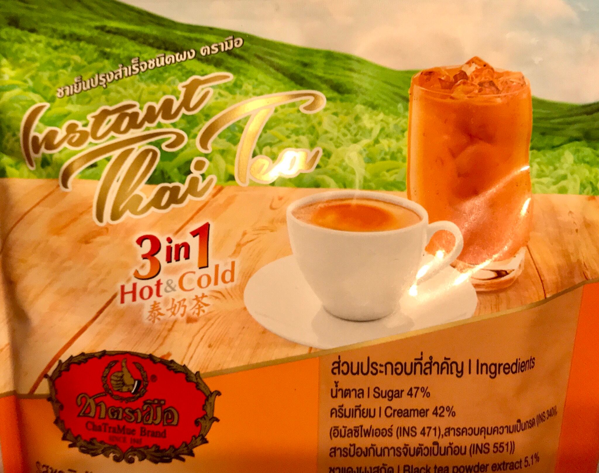 タイのNo.1紅茶ブランド、チャトラムーのインスタントミルクティーです。