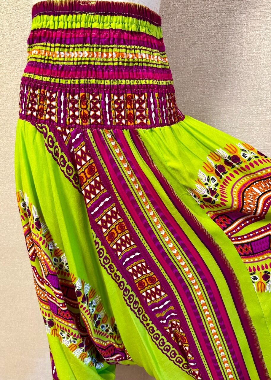 ウエスト部、下部(踝部)ともゴムで作られているため、サイズ感はあまり気にせず、どなたでも履いていただけるタイプになります。