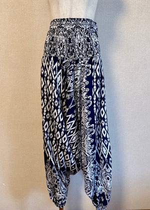 ウエスト部、下部(踝部)ともゴムで作られているため、サイズ感はあまり気にせず、どなたでも履いていただけるタイプになります。