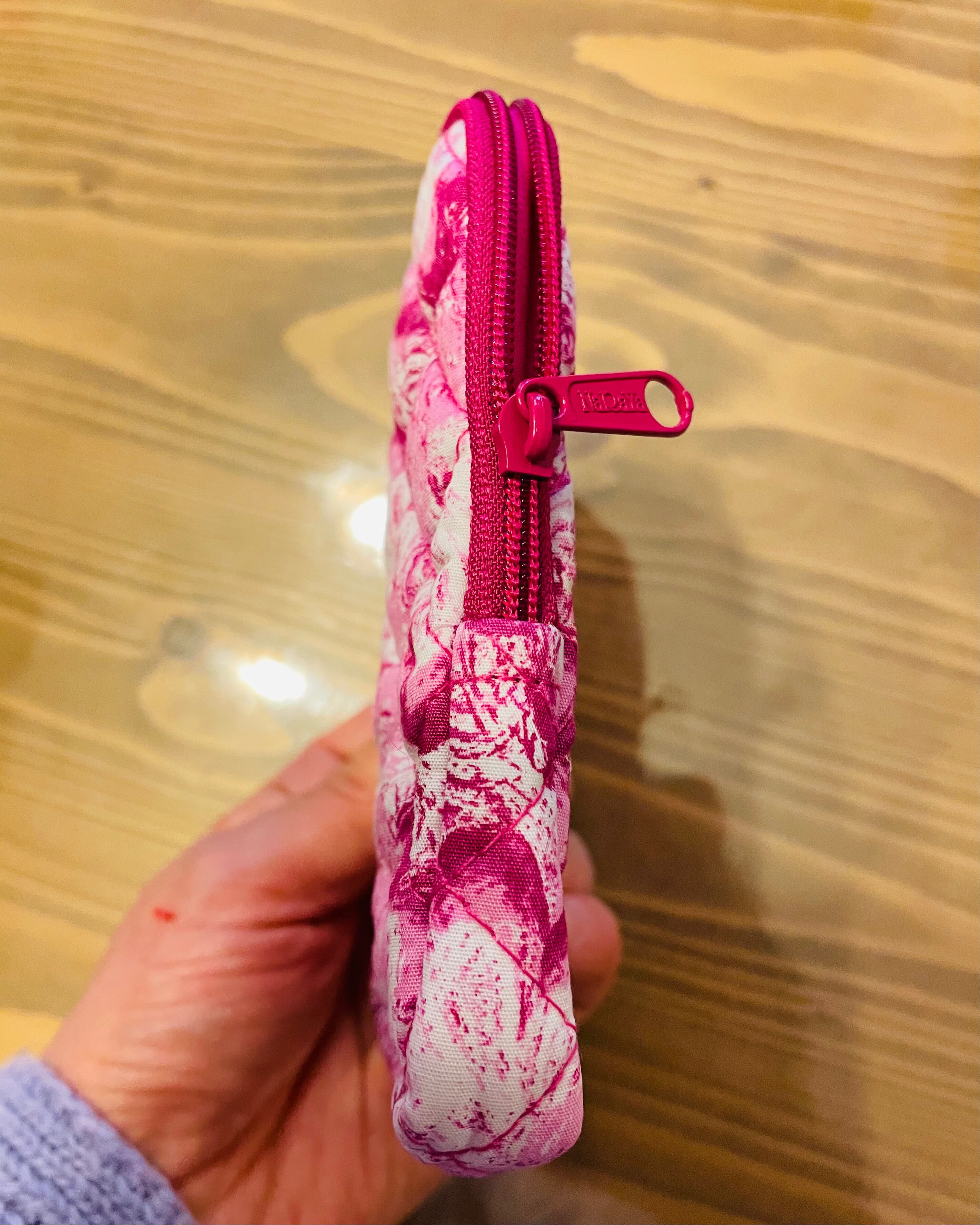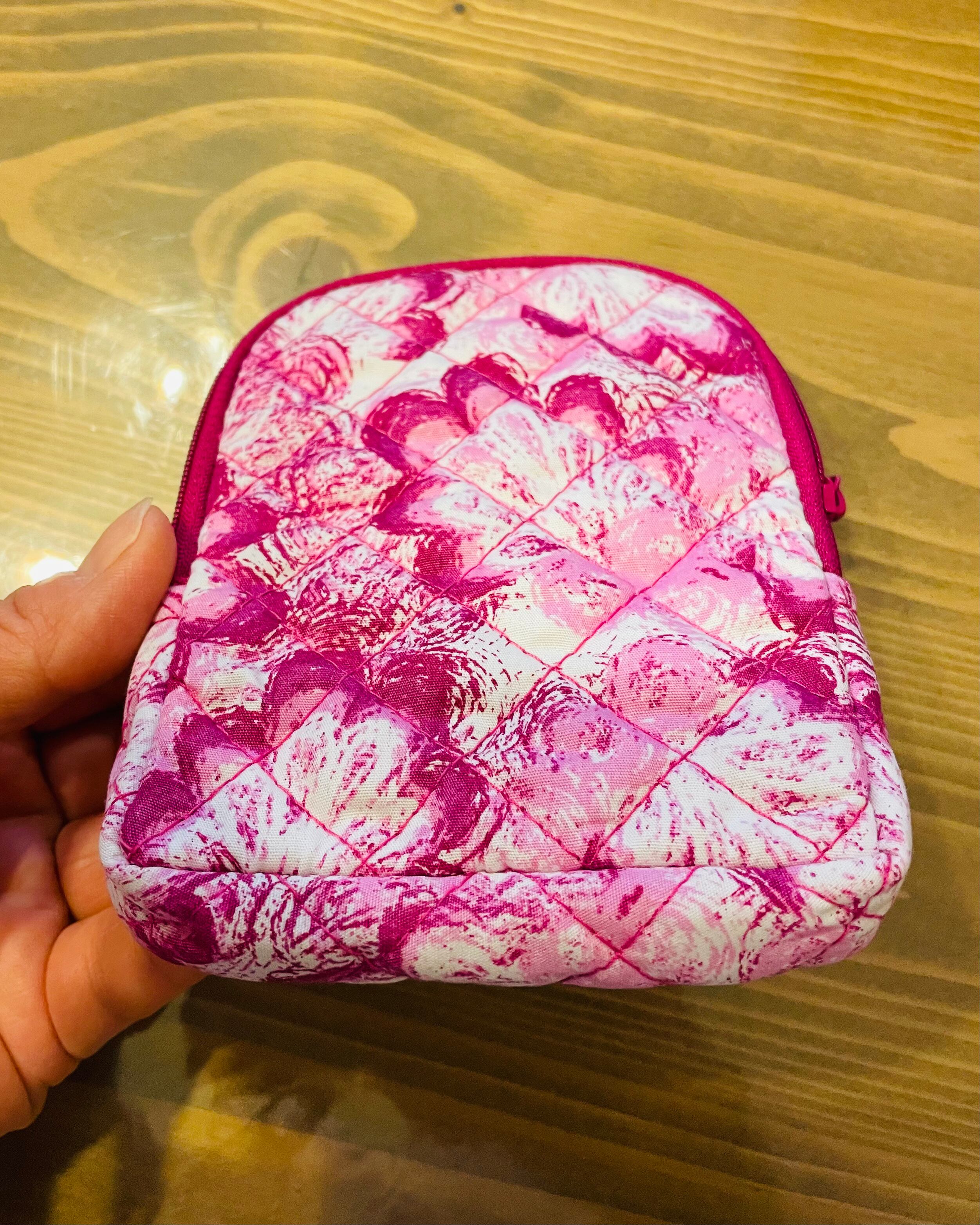 小さめの化粧ポーチにもってこい ♪ の丸っこい形が、何ともかわいいポーチです。