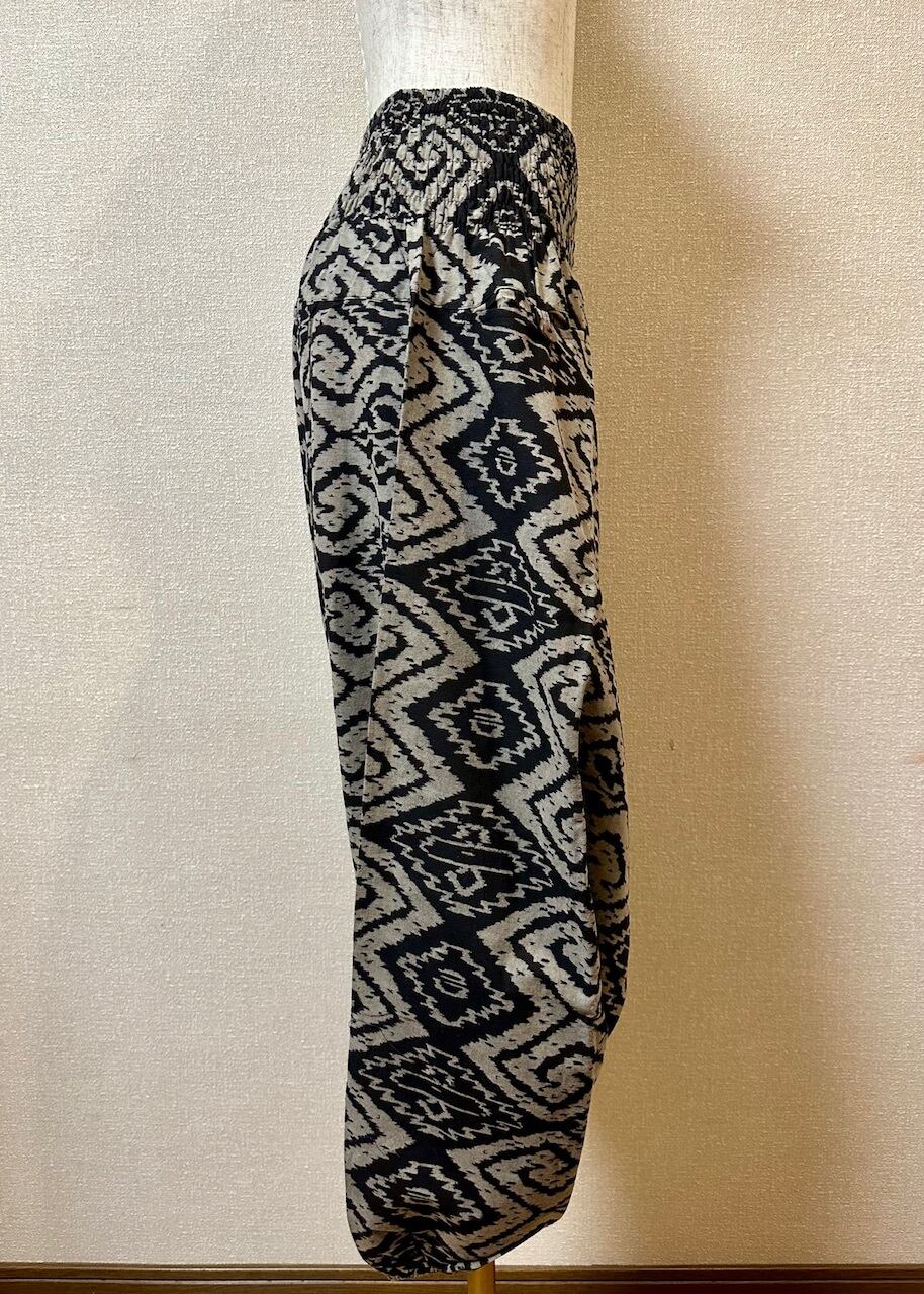ウエスト部分、裾部分は、ゴムでのお作りになりますので、計測サイズは参考程度にご参照ください。